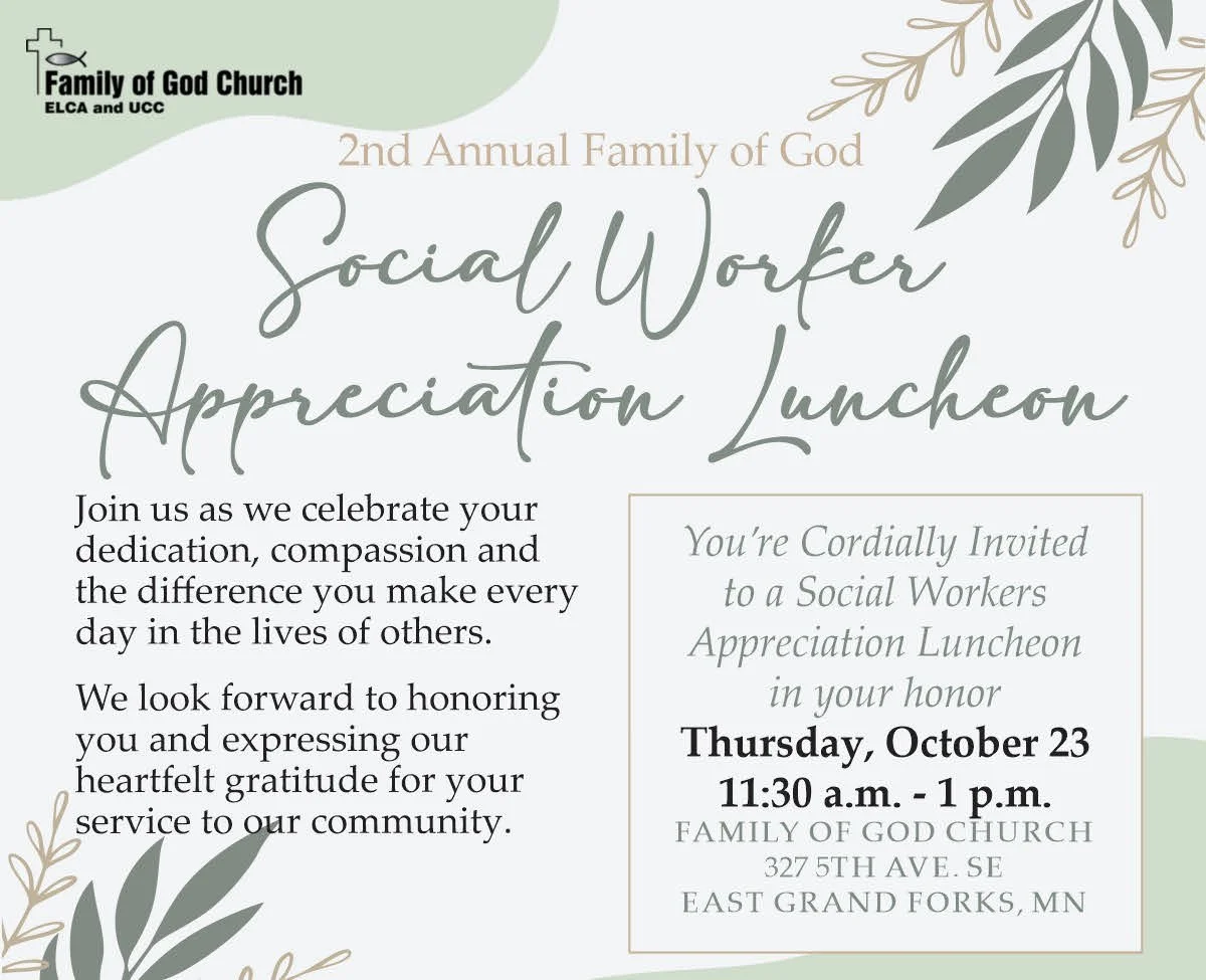 Paul Holje October 9, 2025 2nd Annual Social Worker Appreciation Luncheon Paul Holje October 9, 2025 Time to honor social workers for the great work! Please RSVP to grandcitiesfog@gmail.com